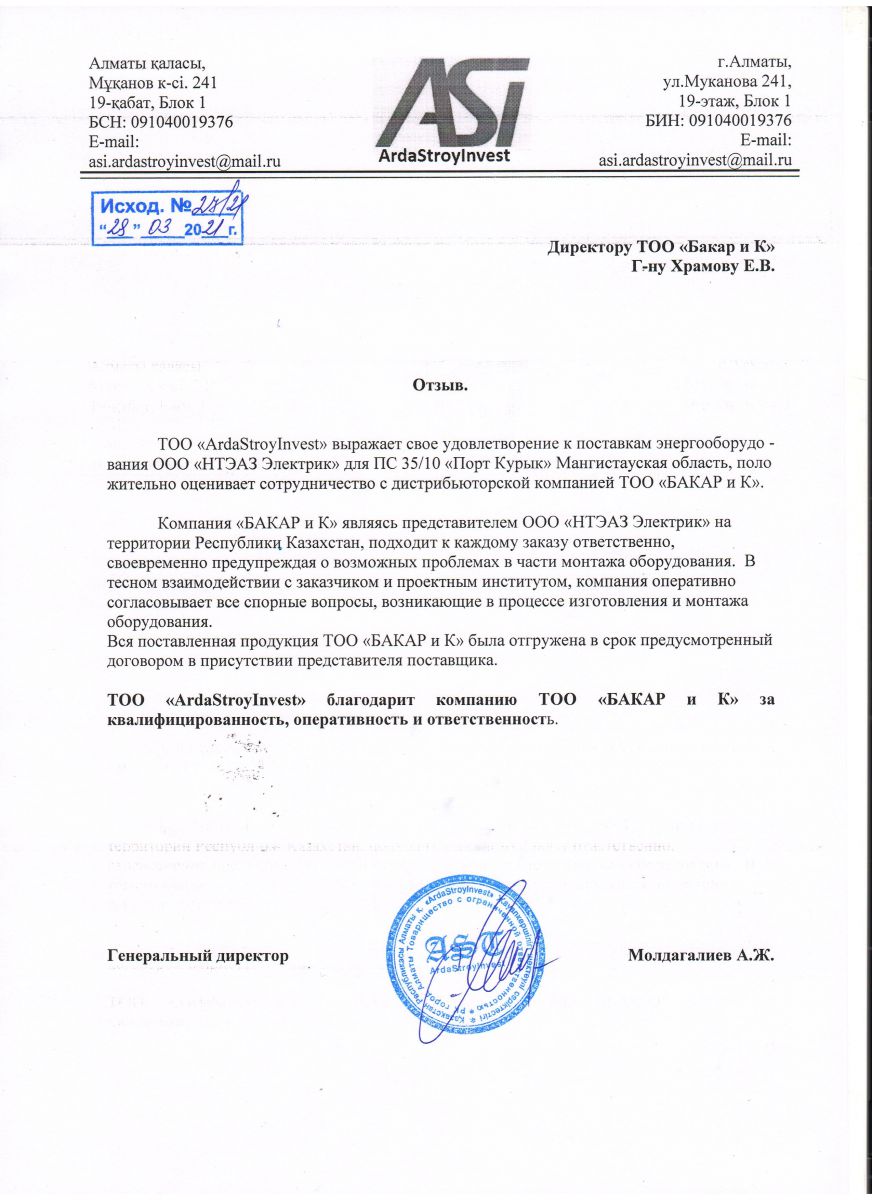Отзыв по эксплуатации ВР35НТ на АО "Кызыльская ТЭЦ"